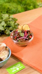 Ceviche cítrico de frijolitos tiernos con chips de camote